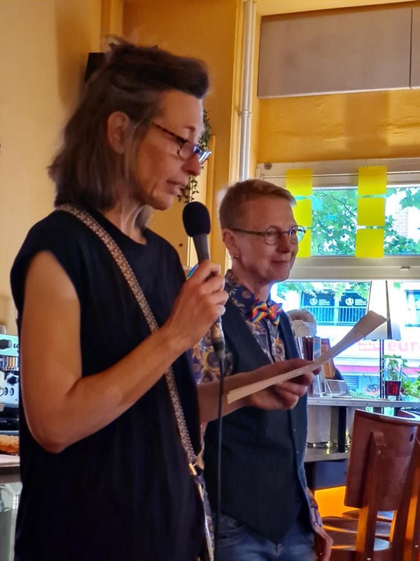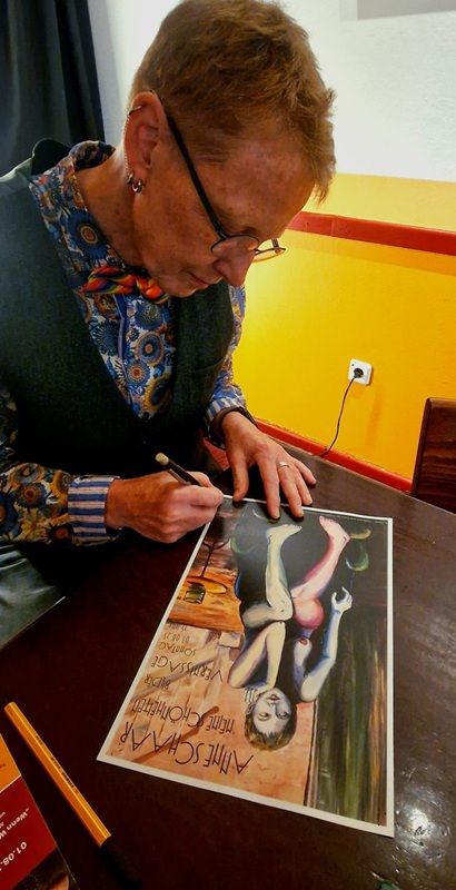 Anne ist leidenschaftliche Schwimmerin und Malerin. Sie reist und fotografiert gerne, ist 5fache Mutter, rettet Menschen vor dem Ertrinken oder unterstützt sie im Alltag, wenn sie das selbst nicht schaffen. Als Frau und Künstlerin ist sie in Frauenkörper verliebt, was ihre Bilder, die wir heute in der Begine sehen, auch bestätigen.