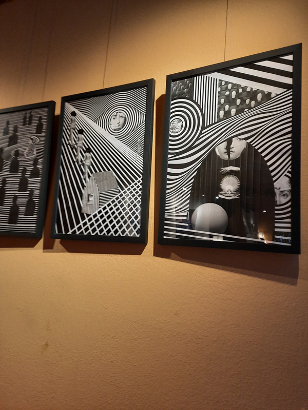 Die Collagen-Technik betont den Ursprung des Wahnsinns: die Konsumgesellschaft. Aus ihren Abfällen entstehen neue Welten mit einem neuen Sinn. Die Schlange beißt sich in den eigenen Schwanz. Die neue Zusammensetzung von existierenden bereits Elementen bricht die alten Strukturen und erschafft neue Bedeutungen, die kritisch gegenüber dem Ursprung stehen.