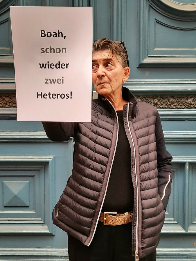 Körperliche und/oder verbale Attacken gegen lesbische und bisexuelle Frauen sind leider immer noch an der Tagesordnung. Mit dieser Ausstellung wollen wir den Spieß umdrehen. Denn „wer bist du, dass du Normalität bestimmst?“